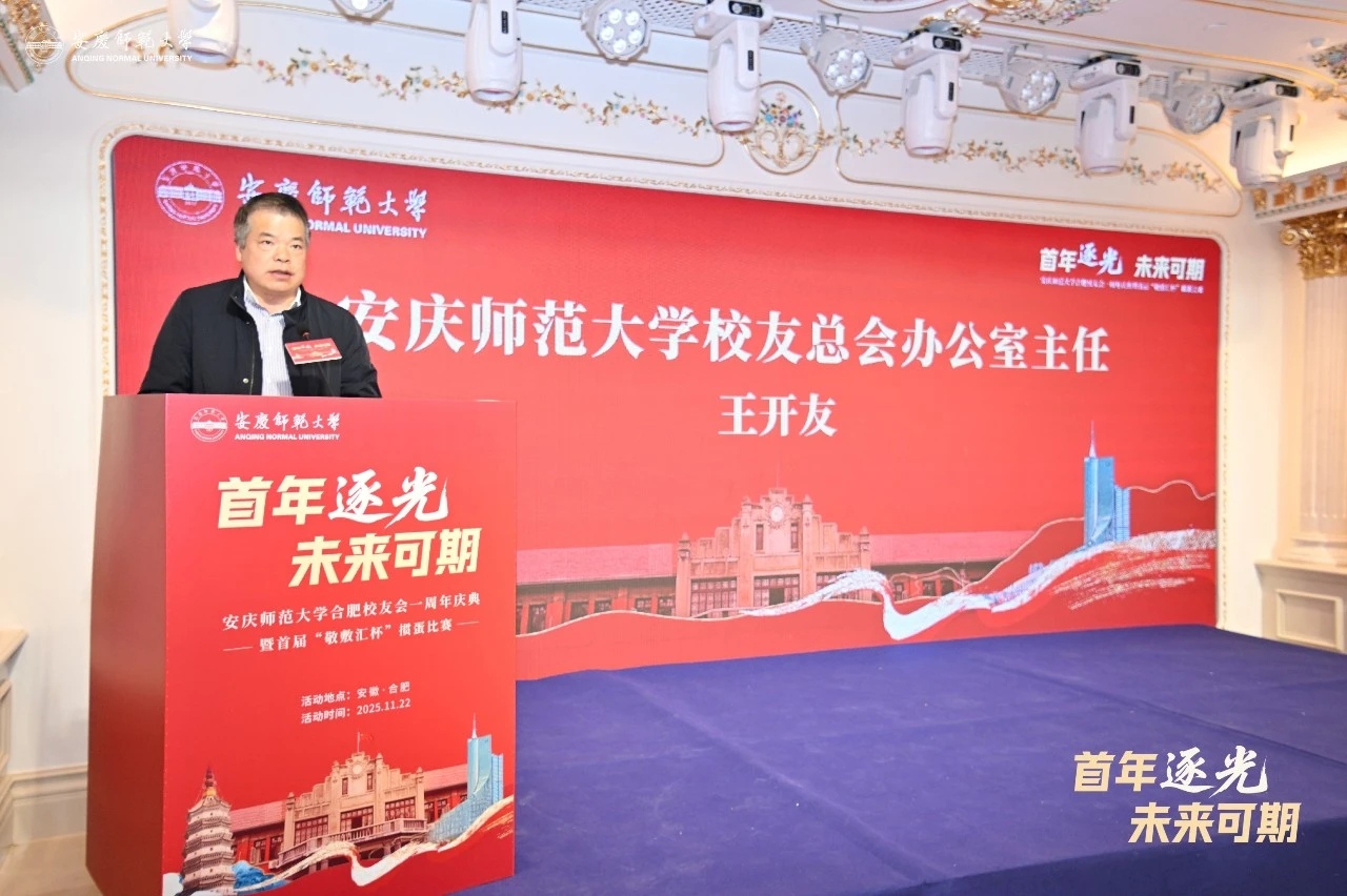 王开友高度肯定了合肥校友会一年来的工作成绩,并向在肥校友致以深切问候。他指出,在顾问与理事会领导下,合肥校友会积极构建交流平台、优化服务机制、回馈母校建设并拓展对外联络,成效斐然,赢得了广泛赞誉。他通报了学校过去一年在学科建设、人才培养、师资队伍、社会服务及文化传承等领域取得的突出进展。他殷切期望各位校友持续关注支持母校发展,携手谱写事业新篇章,并对合肥校友会未来发展提出三点建议:一是打造校友互助成长的“加油站”,助力校友实现事业突破与生活品质跃升;二是担当校友与母校联络的“主枢纽”,持续深化情感纽带与资源协同;三是成为母校在合肥发展的“加速器”,积极搭建产学研合作桥梁,服务母校和地方经济社会的高质量发展。