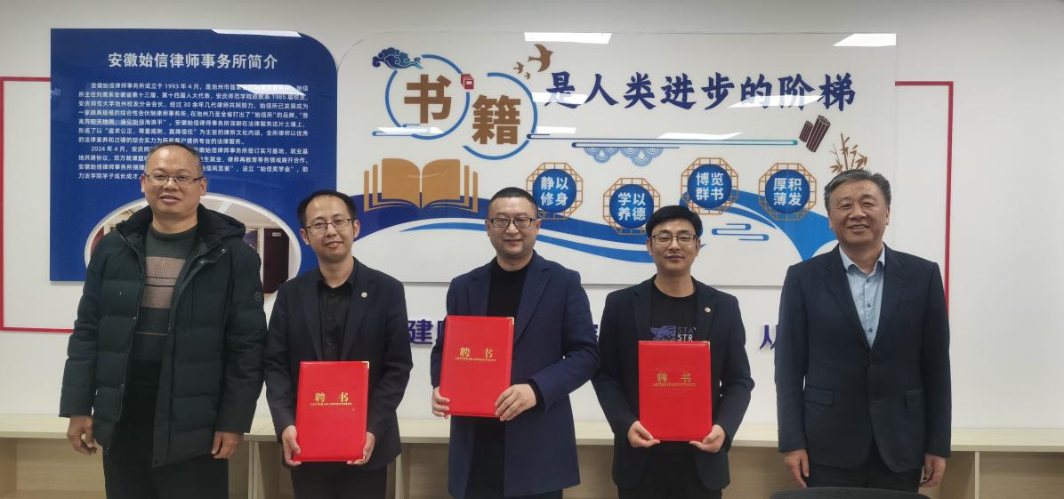 12月3日下午,法学院与安徽始信律师事务所协同育人平台——“始信阅览室”揭牌仪式在法学院四楼举行。我校1985届校友、安徽始信律师事务所主任刘鹰,律所高级合伙人、党支部书记唐开发,律所刑事业务部主任、2014届校友田源以及专职律师刘斌等一行四人返校参会,学校校友会秘书长王开友,法学院党委书记、校友分会会长钱敏,法学院副院长崔汪卫,党委副书记卫功兵,法学院副院长邱少晖,法学院教学秘书、校友分会秘书长李丹及师生代表共30余人参加。仪式由卫功兵主持。